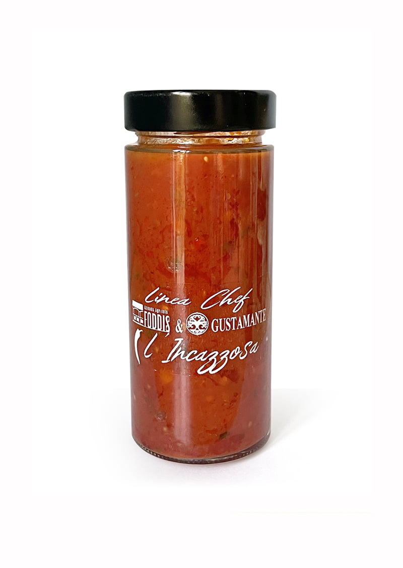 Ingredienti: salsa di pomodoro, PEPERONCINO CALABRESE, cipolla, SEDANO, carote, basilico, olio extravergine d’oliva, sale.